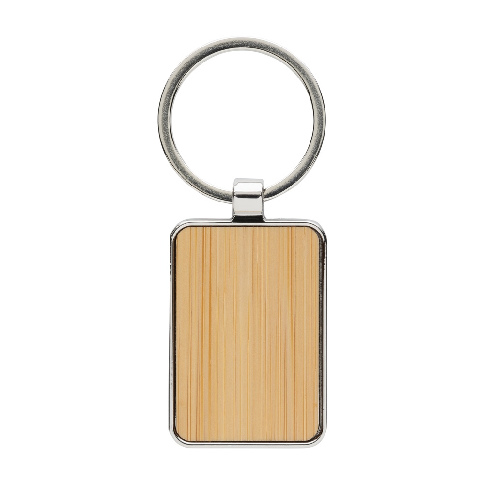 Logo trade promotional merchandise image of: RCS recycled zinc alloy rectangle keychain with bamboo