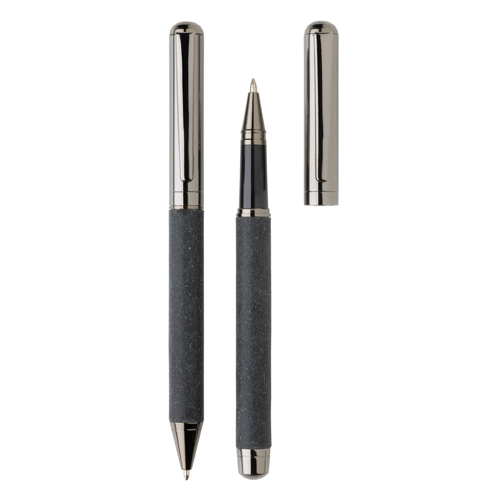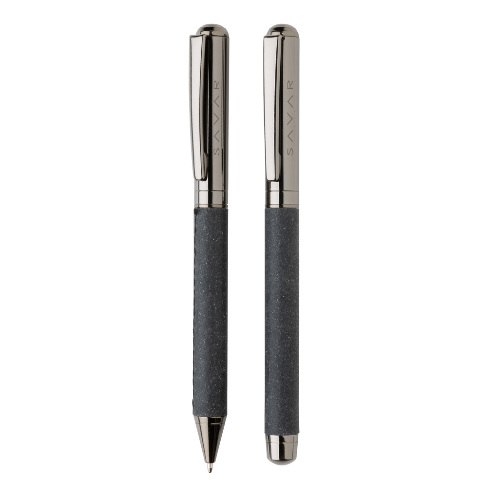 Recycled leather pen set, grey
