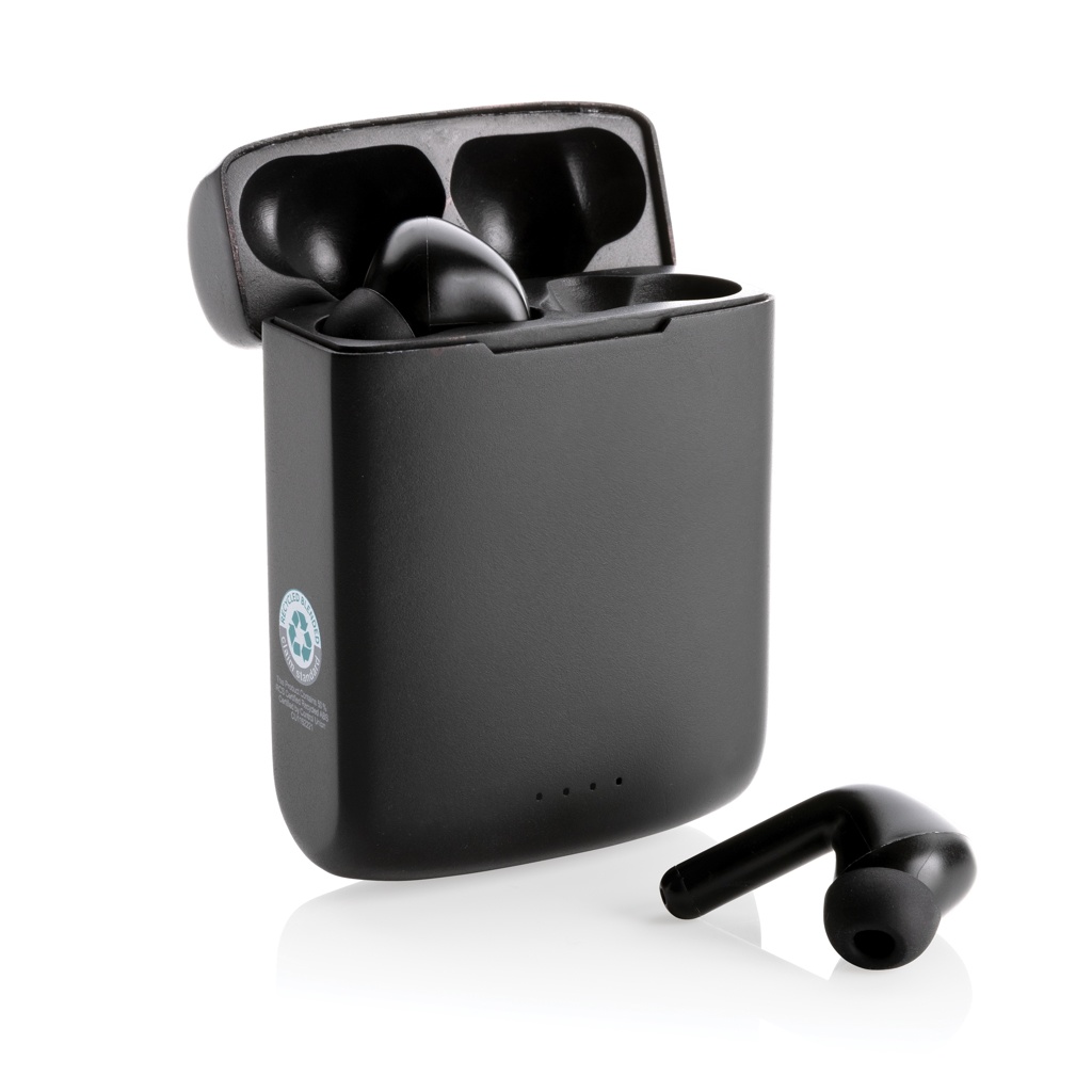 Products Sustainable promotional products Skywave RCS recycled plastic solar earbuds