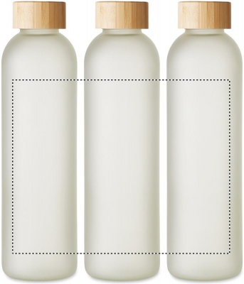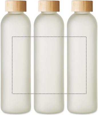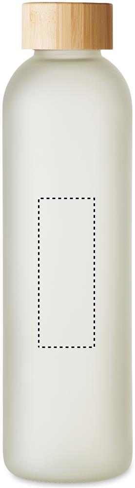 Glass bottle with special coating for sublimation and bamboo lid. Capacity: 650 ml. Bamboo is a natural product, there may be slight variations in colour and size per item, which can affect the final decoration outcome.