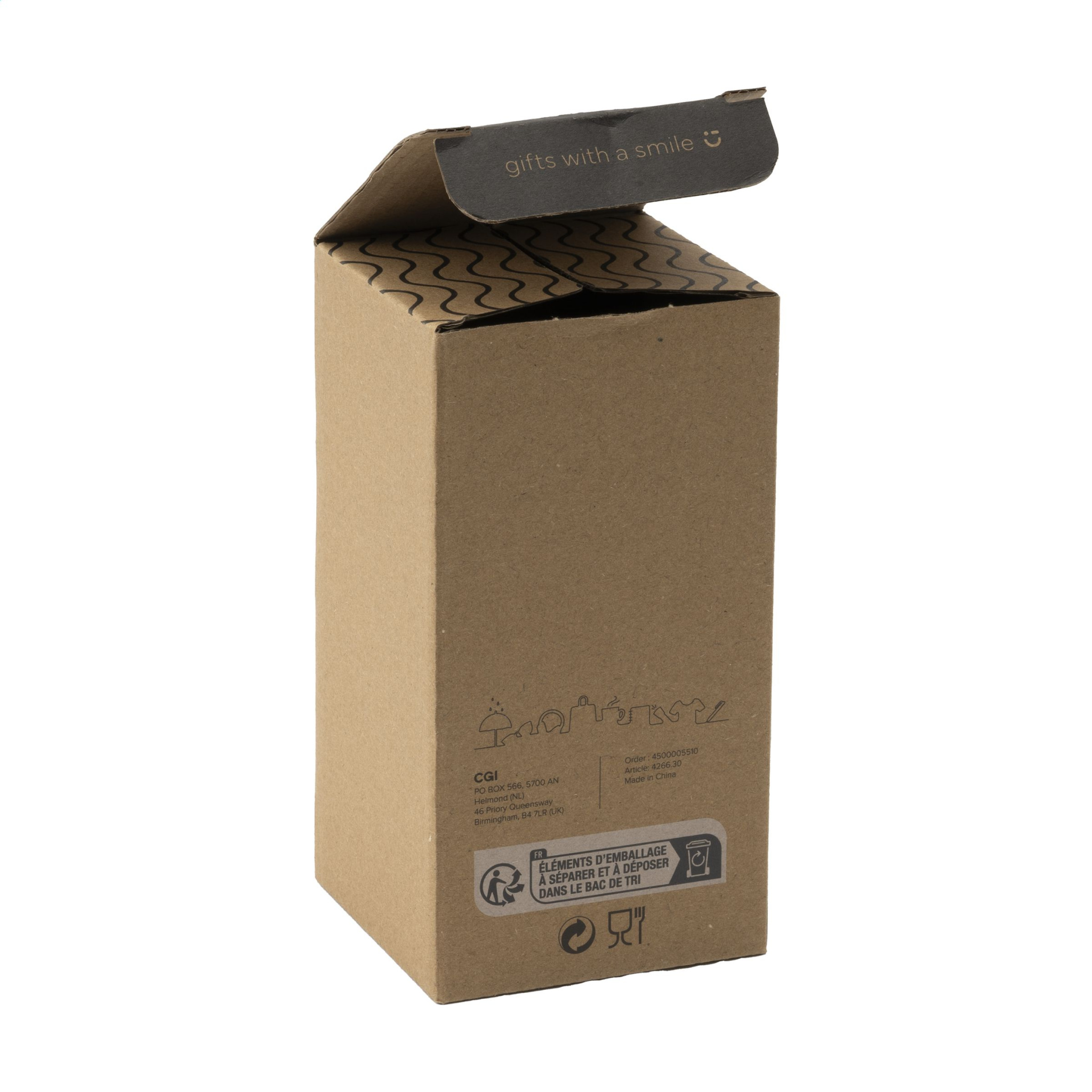 WoW! Double-walled thermos cup made from recycled stainless steel. With a plastic inner wall, screw lid and click-opening. Non-slip bottom. RCS-certified. Total recycled material: 46%. Capacity 300 ml. Stainless steel can be recycled many times whilst retaining the quality of the material. By using recycled stainless steel, fewer new raw materials are needed. This means less energy consumption and less use of water. A responsible choice. Each item is supplied in an individual brown cardboard box.