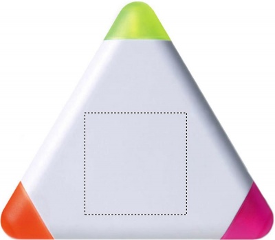 Triangular shape highlighter in ABS casing. 3 colour ink: yellow, fuchsia and orange.
