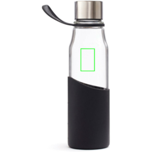 A neat waterbottle in glass with a silicon sleeve. The sleeve gives you a nice grip and protects the bottle from outer impact. Simple and stylish design. The bottle is made with borosilicate glass, a type of glass that is more resistant to thermal shock than ordinary glass. Borosilicate is a highly durable and qualitative material that lasts and withstands most impacts.