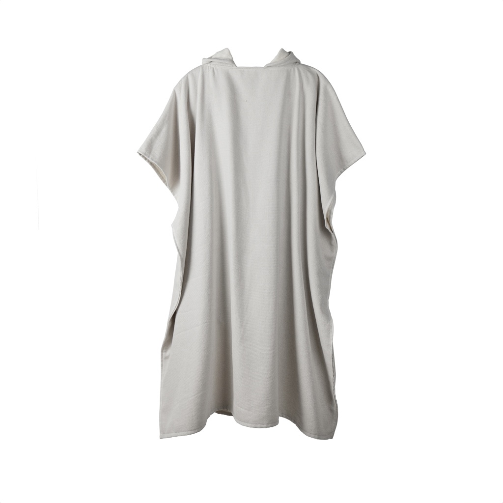 Hammam poncho designed with two different types of textures, one side in terry and the other side plain weave. The poncho is a practical and versatile garment, perfect for the beach or by the pool. It has an excellent absorbency and dries up quickly. The poncho is crafted from 75% cotton and 25% polyester and has a thickness of 360 gsm. Measurements: 100x95cm. OEKO-TEX® STANDARD 100. 09.HIN.68091. Hohenstein HTTI.