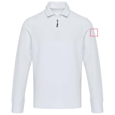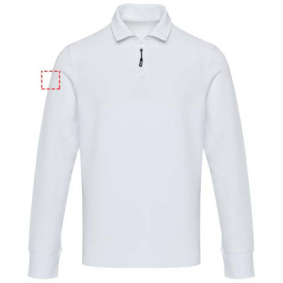 The Zeus unisex long sleeve with half zip is made from 245 g/m² piqué knit in 100% cotton for year-round wear. It features refined pick-stitch detailing, with self-fabric neck tape for added durability and side slits with self-fabric inserts for enhanced mobility. A heat transfer main label ensures label-free comfort. Equipped with AWARE™ traceability technology, this garment includes a digital product passport for verified transparency and sustainability.