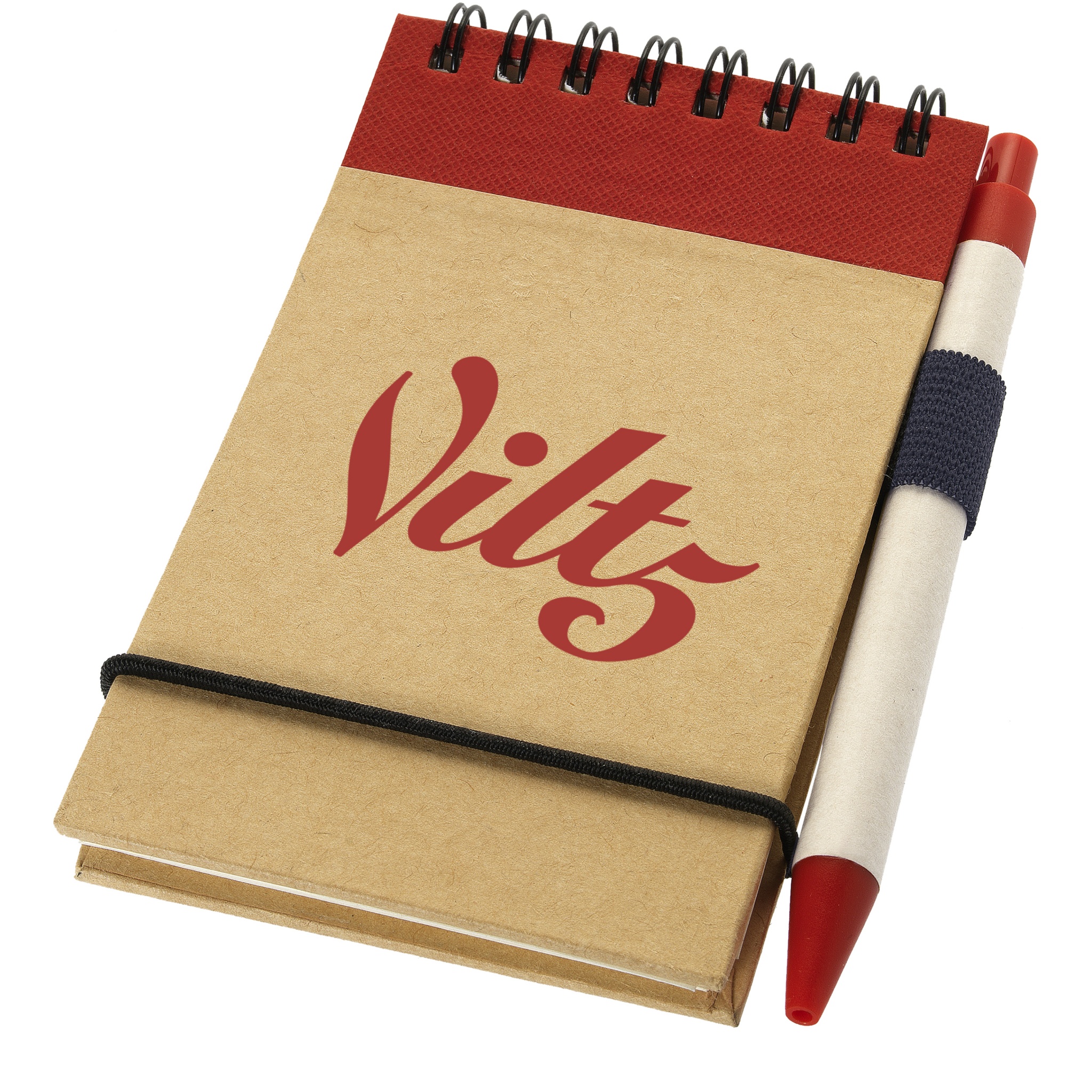 Zuse A7 recycled jotter notepad with pen, Natural / Red