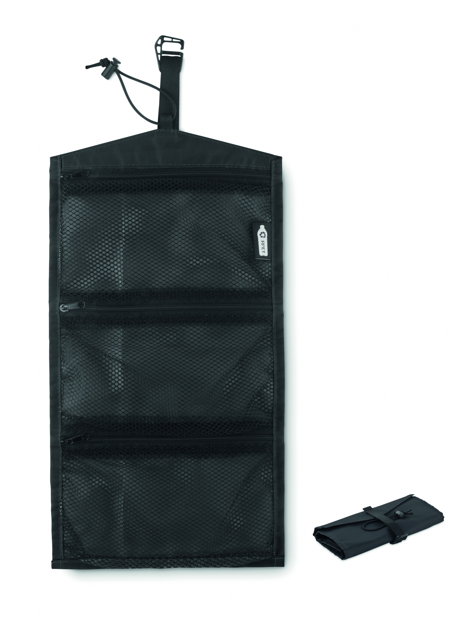 210D RPET kaablirullikoti korraldaja. Sellel on RPET-võrk, millel on 3 lukuga sektsiooni. Seda kotti saab kasutada ka kosmeetikakotina.