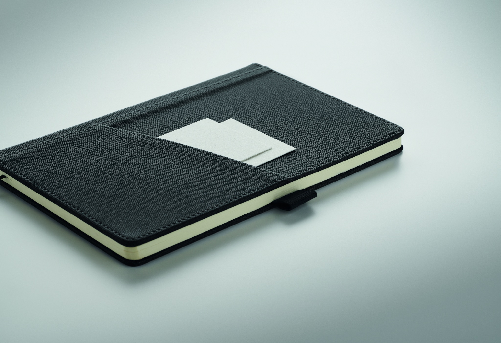 3-osaline kinkekomplekt kinkekarbis. Kaasa arvatud metallist keerduv pastapliiats RPET polüesterdetailidega, RPET kõvakaaneline sülearvuti eesmise nutitelefoni taskuga ja RPET polüester võtmehoidja. Sinine tint.