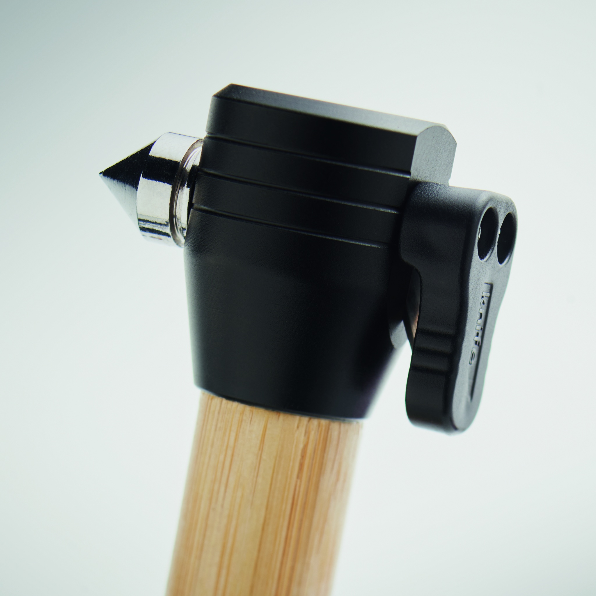 Logo trade ärikingi pilt: 3-ühes bambusest taskulamp koos avariivasara ja turvavöölõikuriga