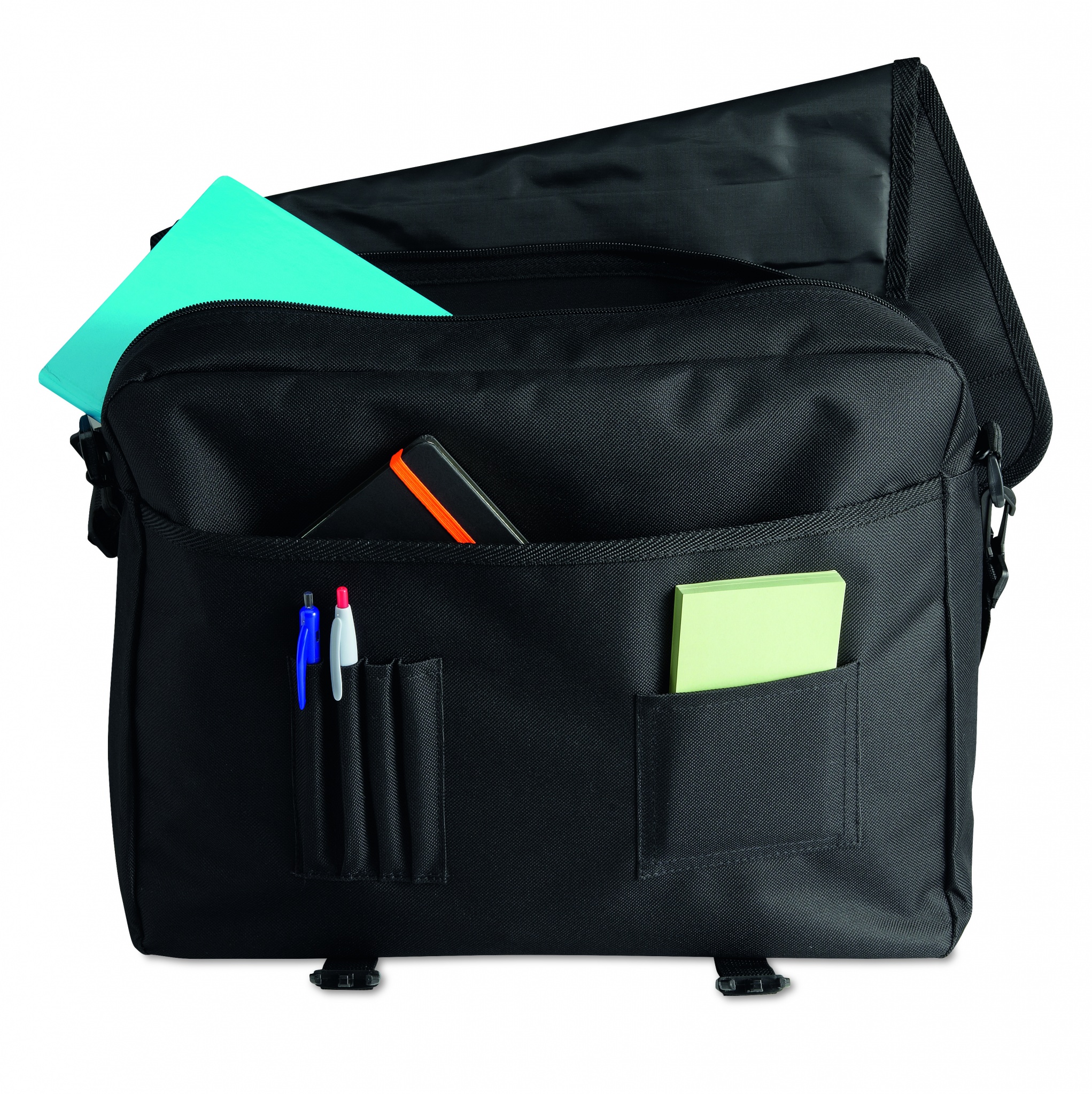Dokumendiklapiga kott 600D polüestrist lukuga põhisahtli ja mitme reguleeritava ja eemaldatava õlarihmaga taskuga.