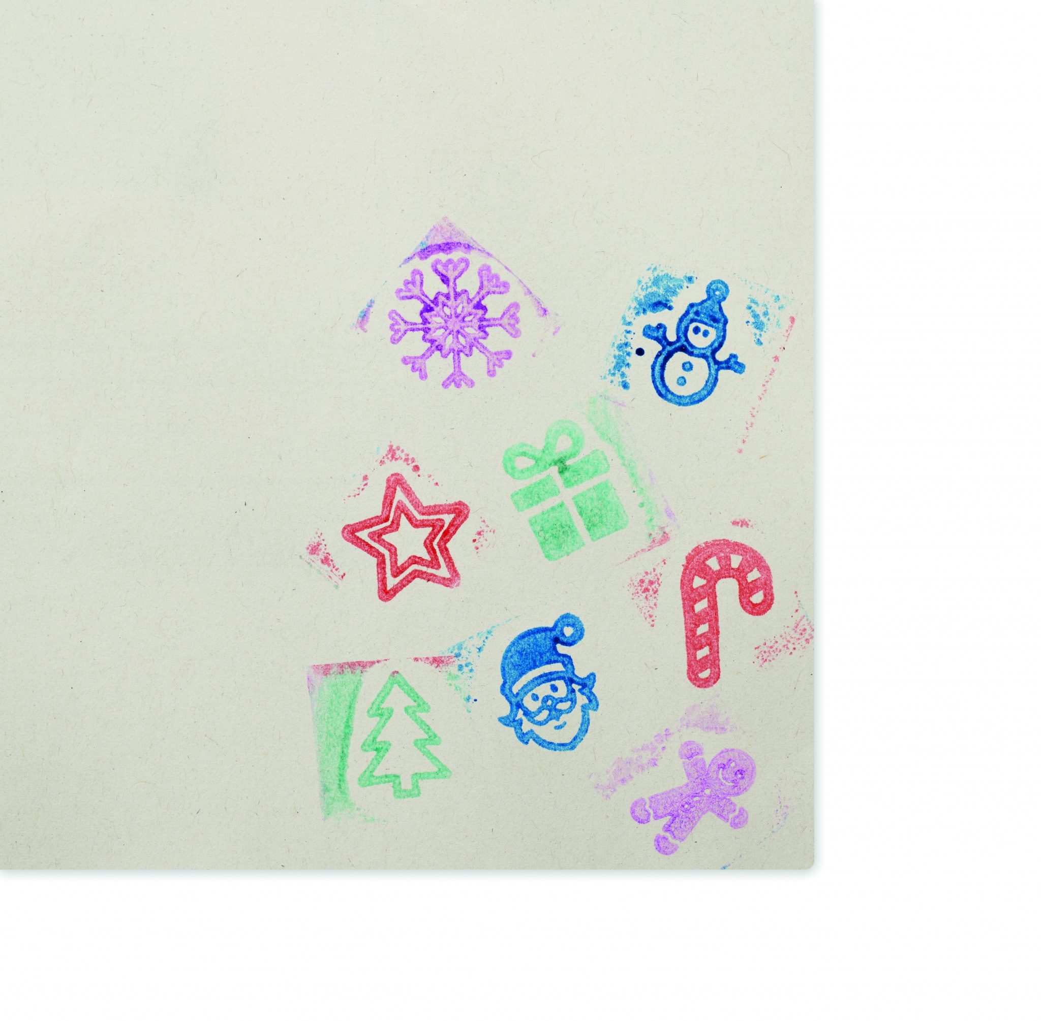 Komplektis 8 puidust jõulutemplit ja mitmevärviline 4 erinevat värvi templi tindipadi. Esitatakse puuvillases nööriga kotis.