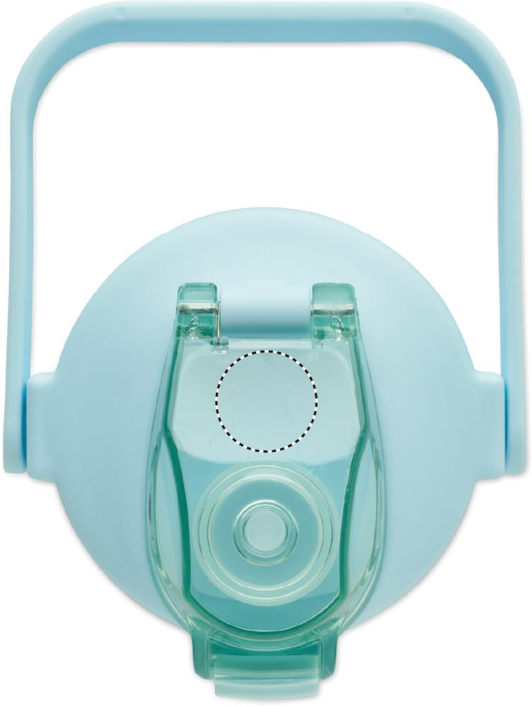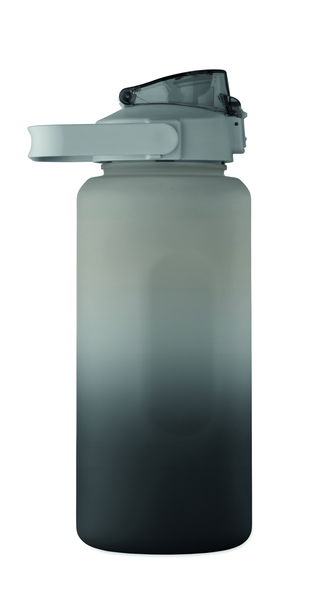 Motiveeriv mõõteskaalaga RPET-ist veepudel. Ühe käega avatava klapiga kaane, kõrre, turvaluku ja käepidemega. Lekkekindel. Maht: 2000 ml