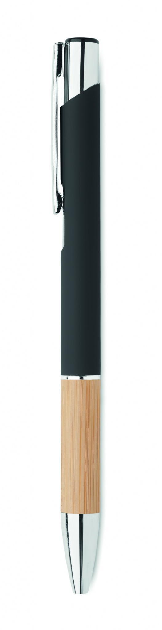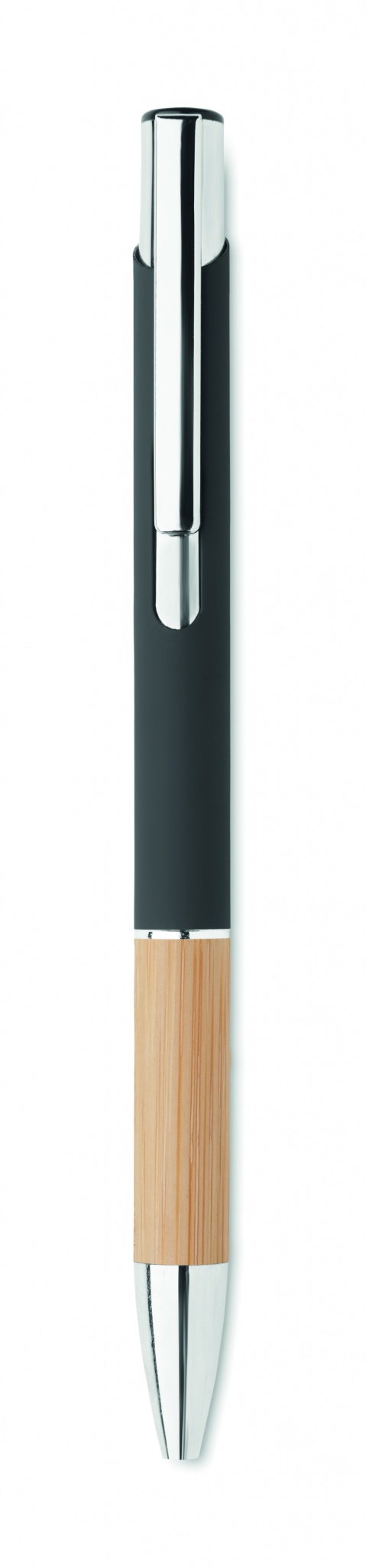 Alumiiniumist valmistatud pastapliiats, mille käepide on bambusest, Must