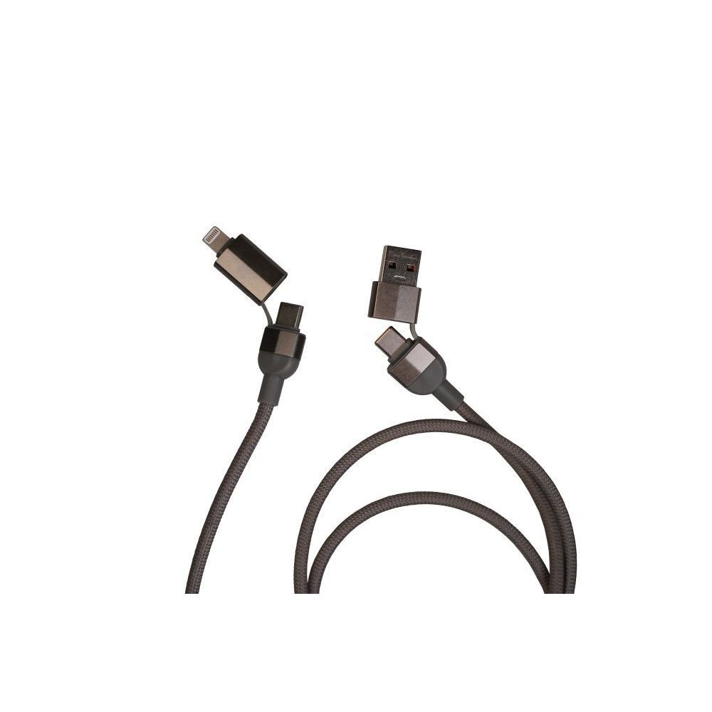 Pierre Cardini magnetiline 100W kiirlaadimis- ja andmekaabel. Kaabel on valmistatud alumiiniumist, punutud nailoniga, alati hoolikalt volditud tänu magnetile. Kaabli pistikud: sisend USB-A, USB-C; väljund USB-C, Ligntning. Kaabli pikkus on 100 cm. Pakitud kinkekarpi, kaasas autentsussertifikaat.