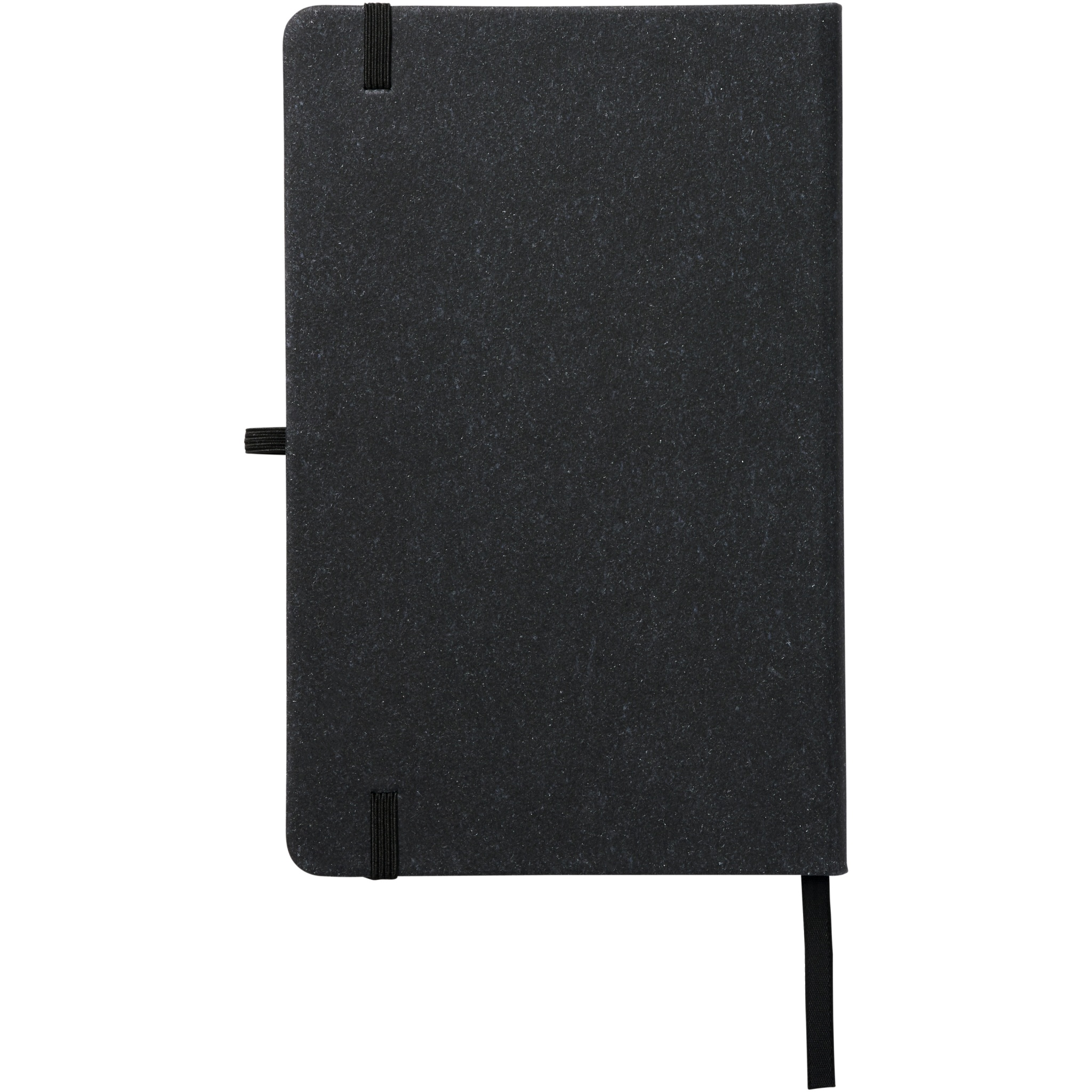 A5 suuruses teatmemärkmik kaanega, mis on valmistatud nahajääkidest. Sisaldab elastset riba, pliiatsi aasat, lindimarkerit ja 80 lehte, 80 g/m² joonelist paberit.