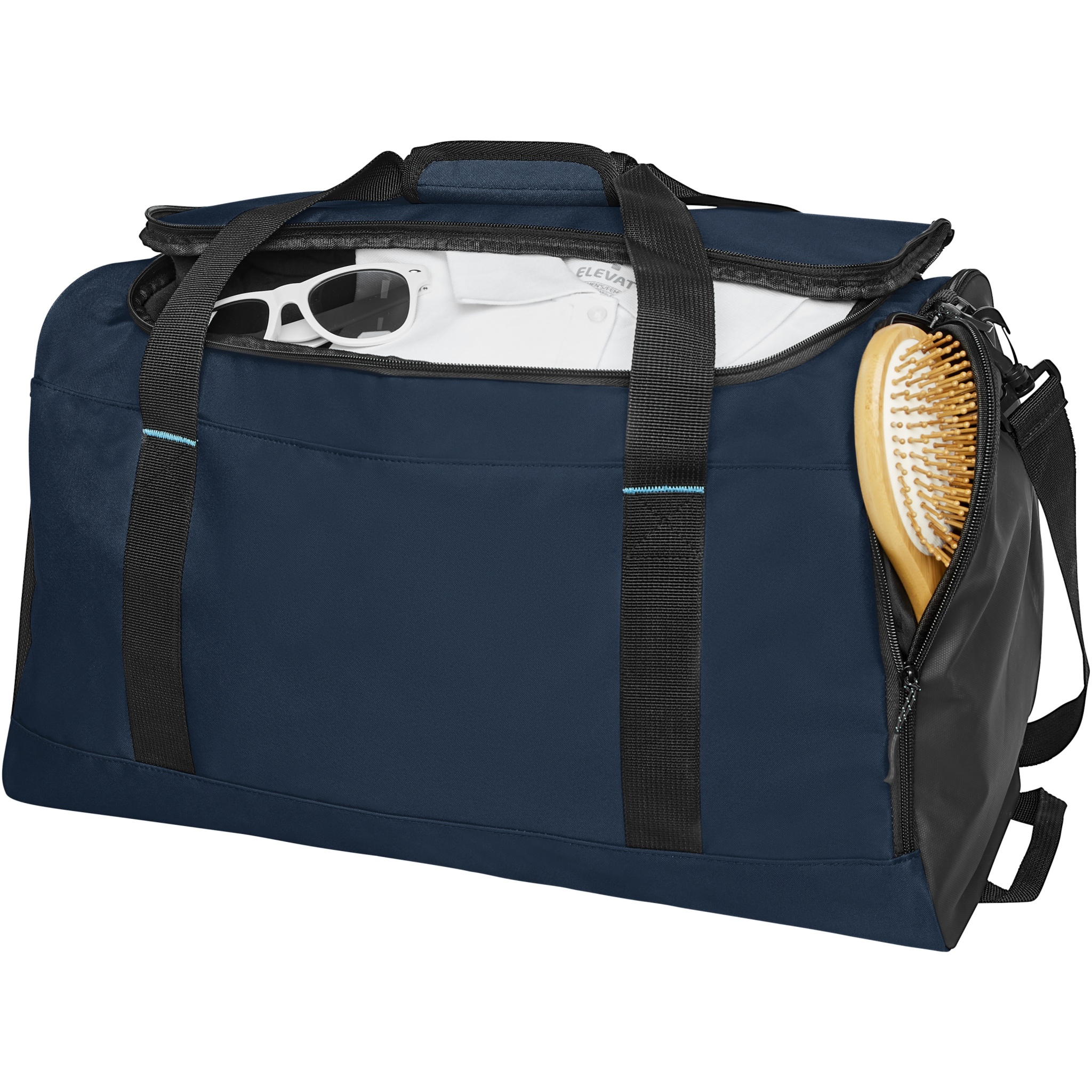 Jätkusuutlik GRS-sertifikaadiga RPET-kott, mis on valmistatud 55% taaskasutatud materjalidest. Sellel on suur lukuga põhisahtel, tugevdatud aluspaneel, külgmine võrktasku ja laiendatav märg/kuiv lukuga tasku. Kaasas väike lukuga sisetasku organiseerimiseks, eemaldatav ja polsterdatud õlarihm, polsterdatud takjakinnisega käepidemed ja täiendav haaratskäepide all paremal küljel.