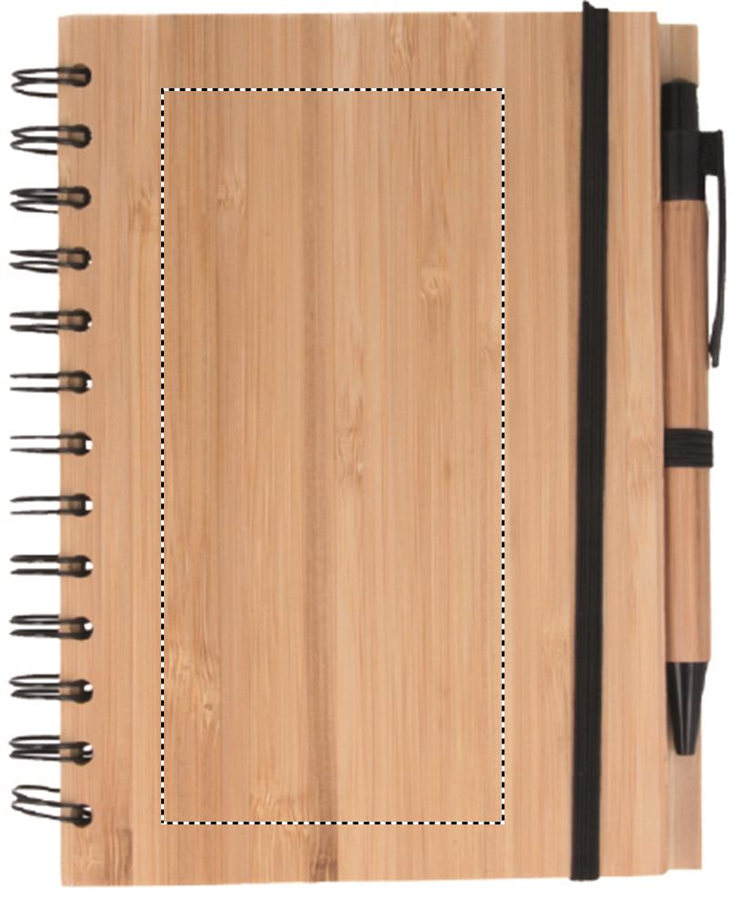 Bambusest kaanega märkmik koos sobiva pliiatsiga. Kahejuhtmeline. 140 joonega taaskasutatud paberilehte (70 lehte). Sobiv nupp-pastapliiats bambusest silindri ja ABS-detailidega. Elastne pliiatsihoidja. Bambus on looduslik toode, ühe eseme värvis ja suuruses võib esineda väikesi erinevusi, mis võivad mõjutada lõppviimistlust.