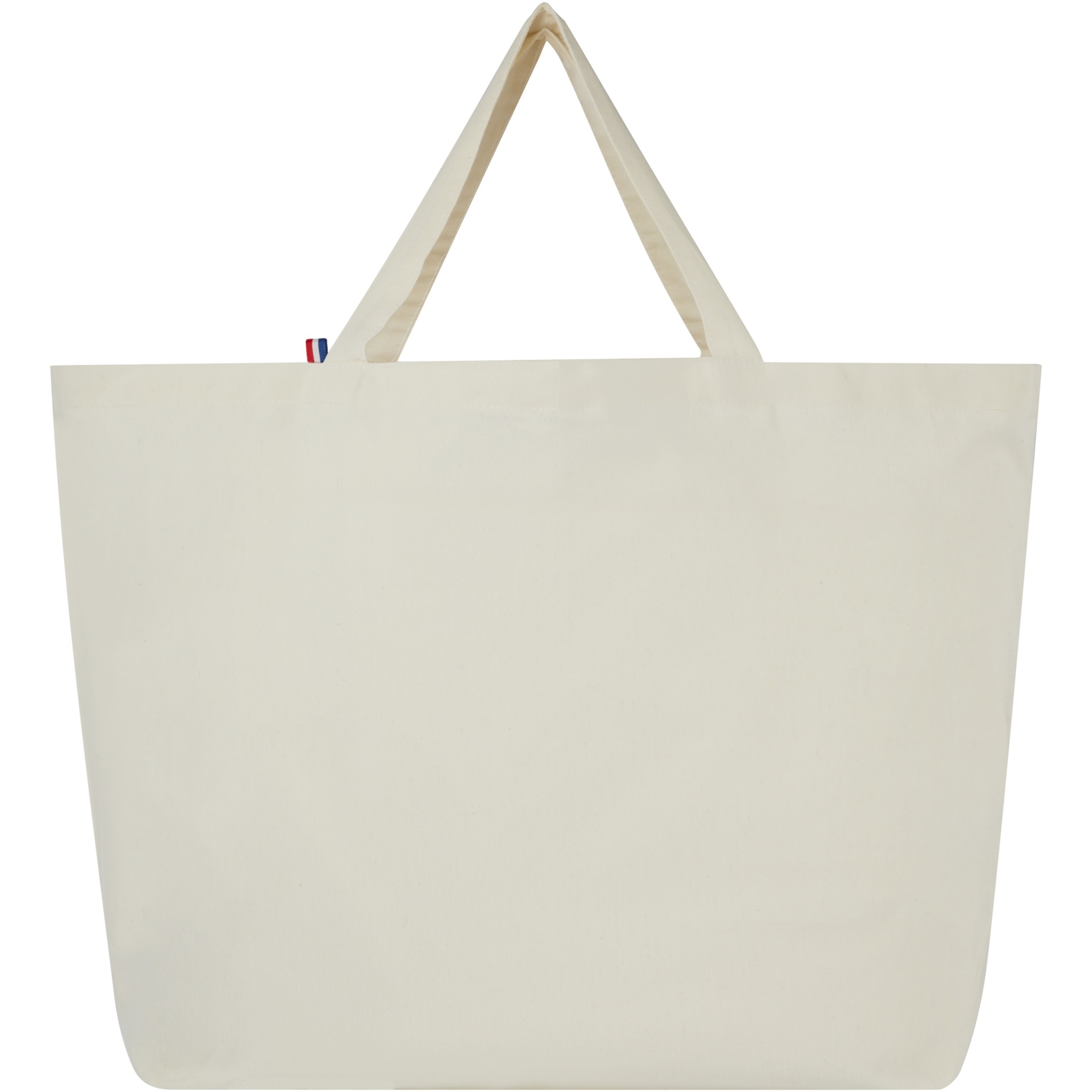 See suure mahutavusega kandekott on valmistatud parimatest, 100% taaskasutatud materjalidest. See on ehitatud igapäevaelus kasutamiseks ja sobib raskete raamatute või toidukaupade kaasaskandmiseks. 200 g/m² taaskasutatud puuvilla/polüestri segu tagab vastupidavuse ja töökindluse, andes kotile vastupidavuse kuni 14 kg kaalule. Lõngad pärinevad Aasiast, kuid kudumine, ketramine ja tootmine toimub Prantsusmaal.