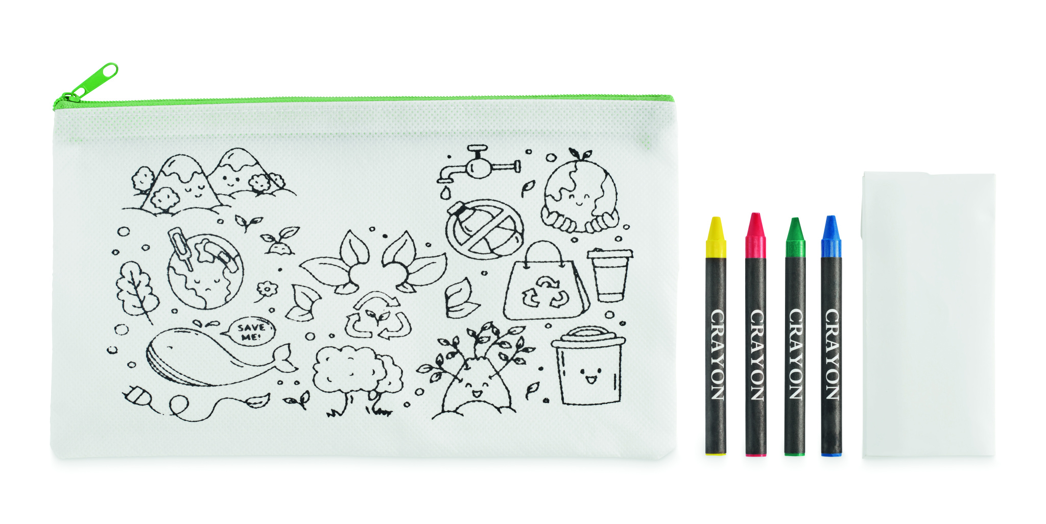 Lausriidest värvitav pliiatsitasku, mis sisaldab 4 värvipliiatsit.
