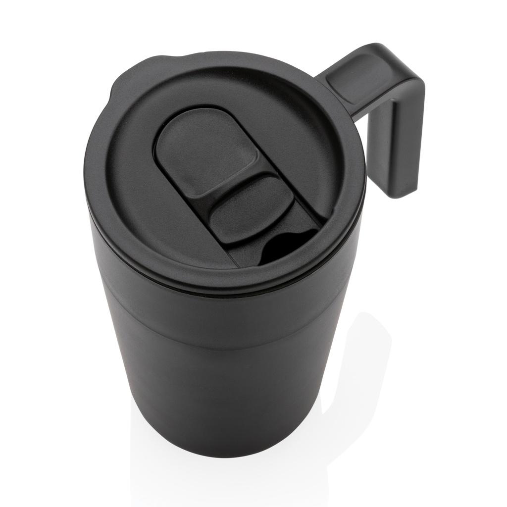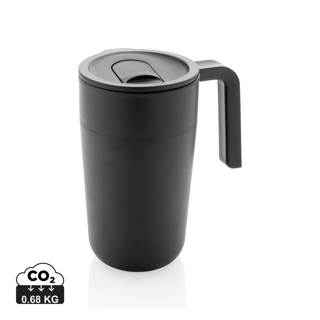 See GRS-i taaskasutatud PP-st ja roostevabast terasest kruus on pritsmekindel ja libiseva sulguriga kaas muudab selle kaasaegse kruusi ideaalseks lemmikjookide nautimiseks liikvel olles. Valmistatud GRS sertifikaadiga taaskasutatud materjalidest. Pudeli sisemus, kaas ja käepide on valmistatud 100% GRS-i sertifikaadiga PP-st. GRS-sertifikaat tagab taaskasutatud materjalide täielikult sertifitseeritud tarneahela. Taaskasutatud kogusisaldus: 60% eseme kogukaalust. BPA vaba. Mahutavus 480ml. Kaasa arvatud FSC®-sertifikaadiga kraftpakendid.