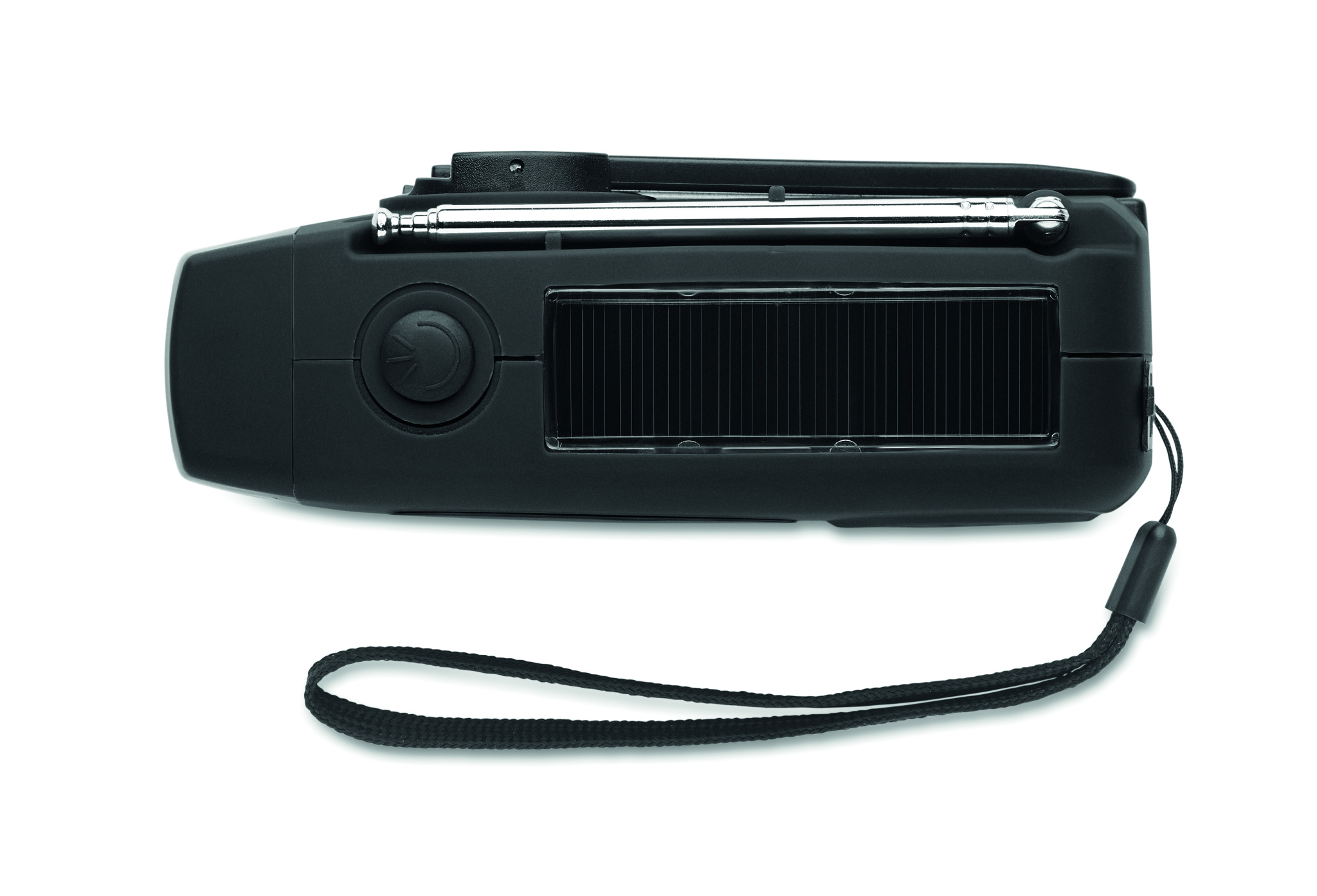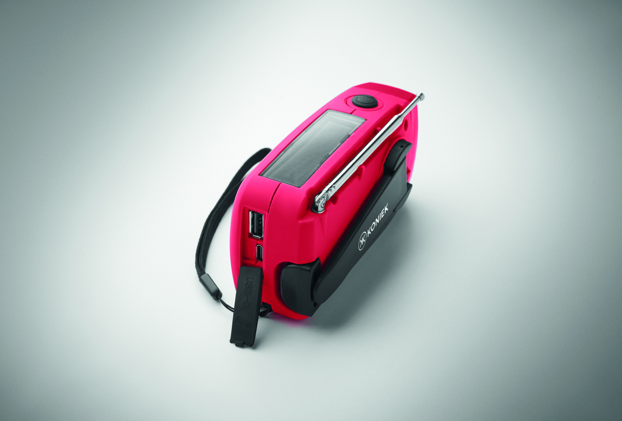 Kaasaskantav AM/FM-raadio vastupidava ABS-plastst korpusega. Raadiol on integreeritud LED-taskulamp (2 valgustusrežiimi) ja 1200 mAh akupank hädaolukordadeks. Seadet saab laadida nii päikesepaneeli kui ka käsivända abil – töötab ka ilma elektrivõrguta.