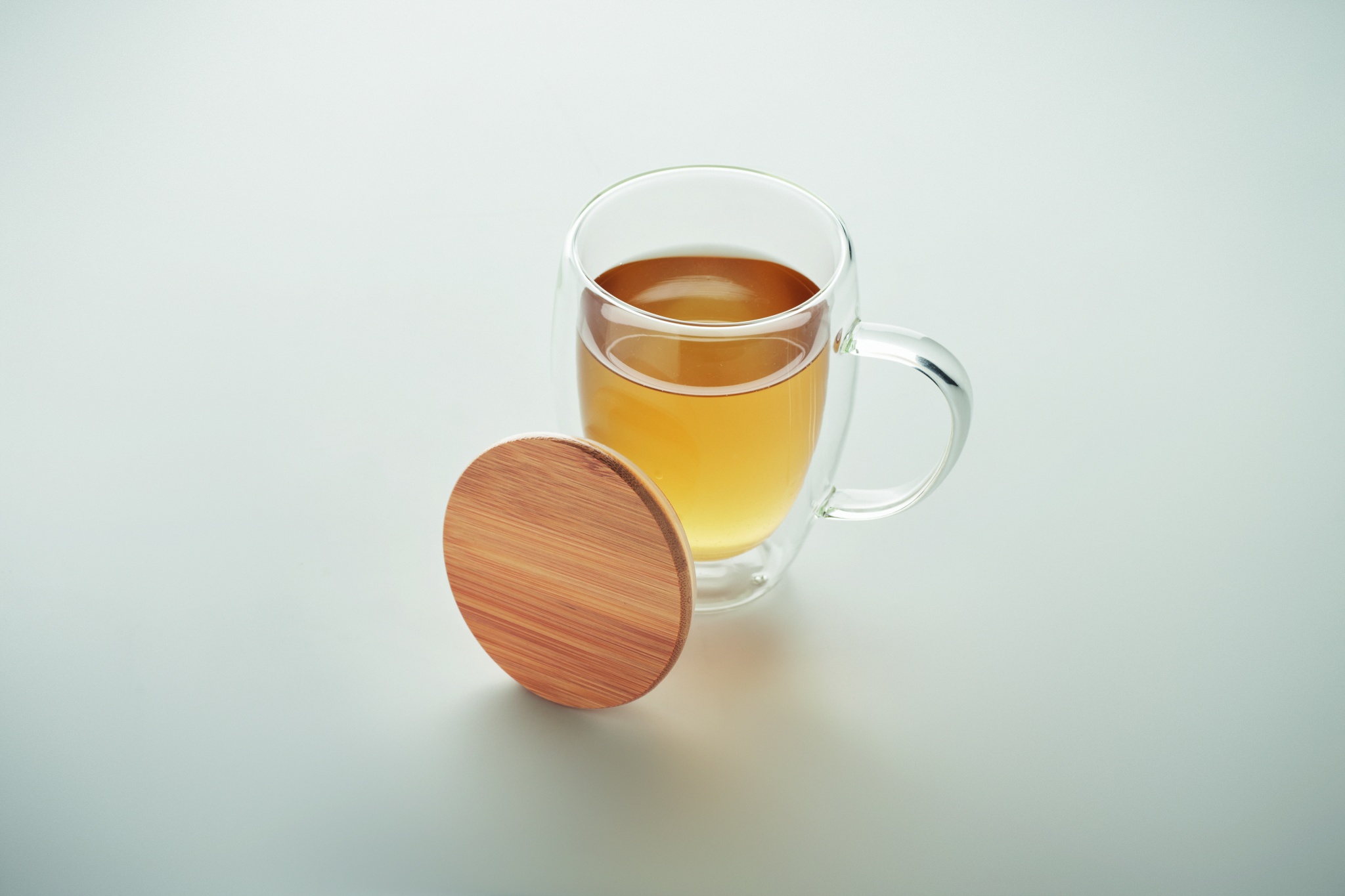 Kaheseinaline borosilikaatklaasist kruus sanga ja bambusest kaanega. Mahutavus: 250 ml.