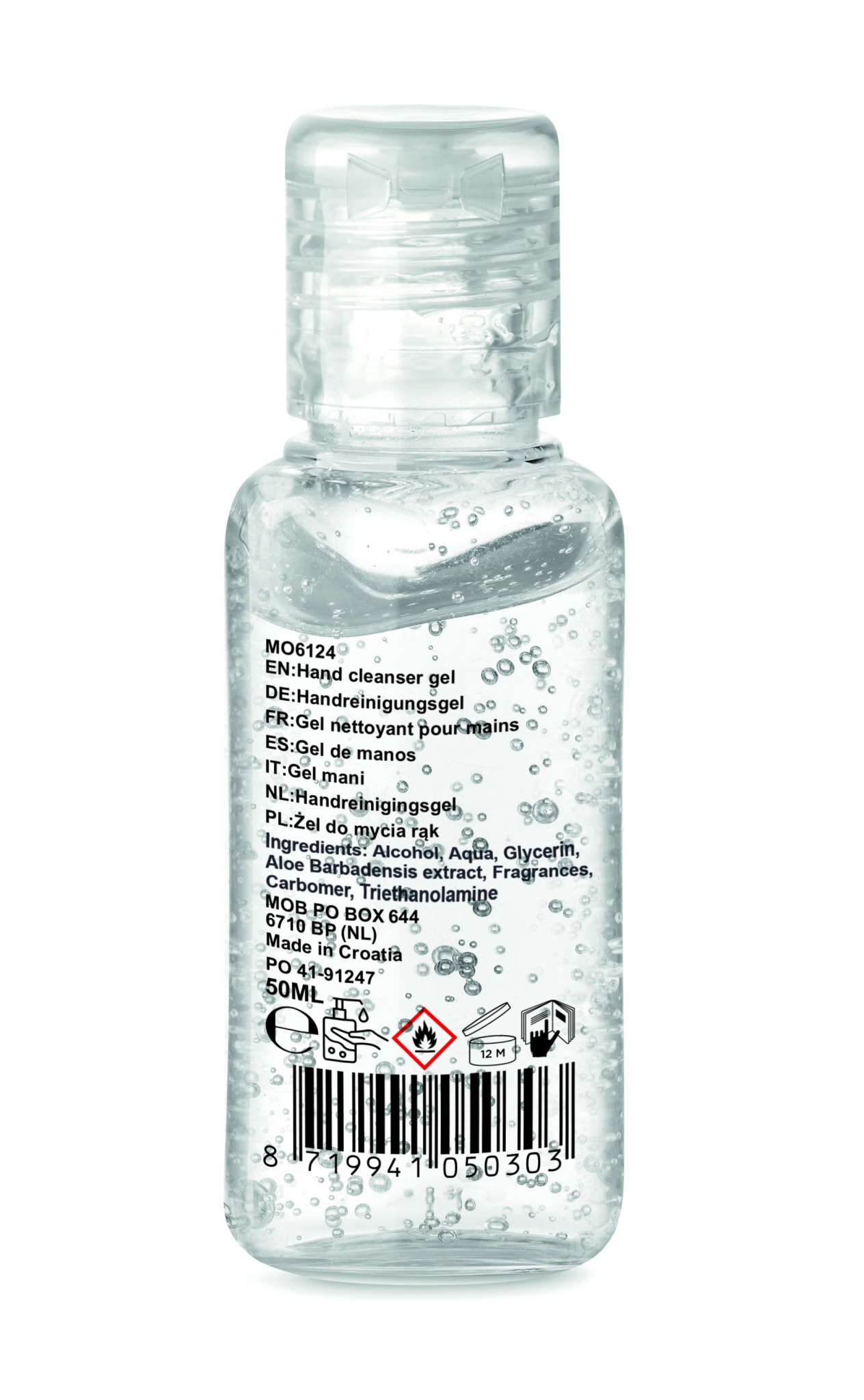Kätepuhastusgeel taastäidetavas PET-pudelis ja keeratava korgiga. Mahutavus 50 ml. 70%-line alkoholipreparaat. Valmistatud EL-is. See toode on klassifitseeritud kosmeetikatooteks.