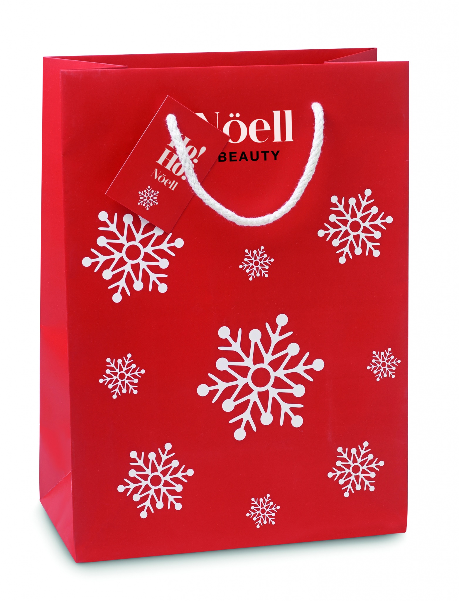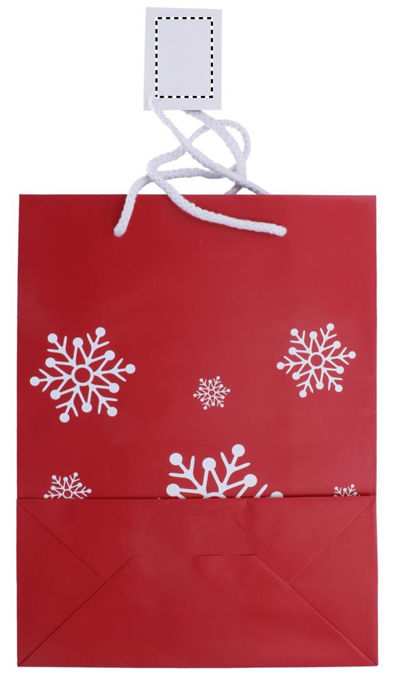 Elegantne lumehelveste mustriga kinkepaberkott. Kaasas kingitussilt. Keskmise suurusega.