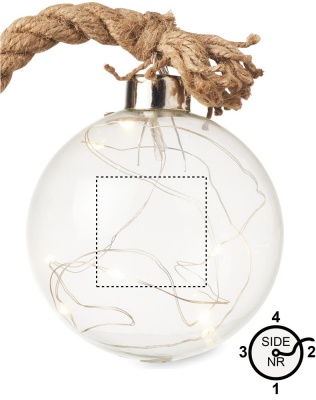 Klaaskilp (Ø 8 cm) 8 LED-soojakollase valgusti ja džuudist nööriga. 2 AA patareid ei sisalda.