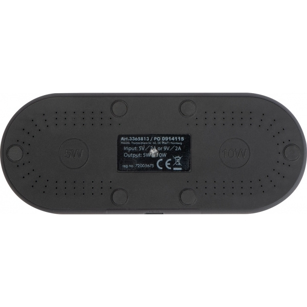 Õhuke plastikust laadimisjaam bambuspinna ja kahe induktsioonlaadimispunktiga nutitelefonidele, sealhulgas laadimiskaabel. Teie logo graveeritakse jaamale.