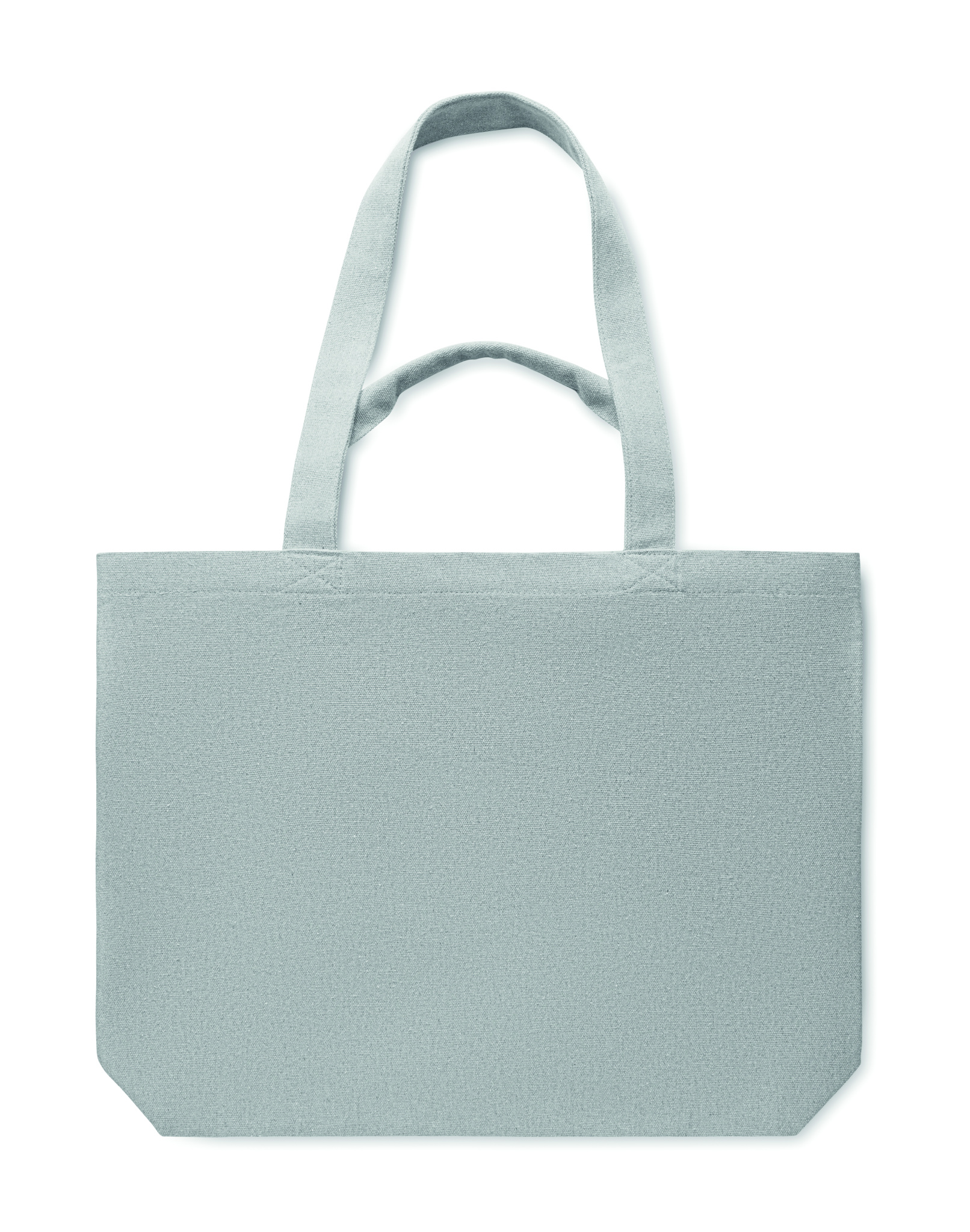 Taaskasutatud kangast (60% taaskasutatud puuvill, 40% taaskasutatud polüester) lühikeste ja pikkade sangadega ostu-/rannakott. 320 gr/m².
