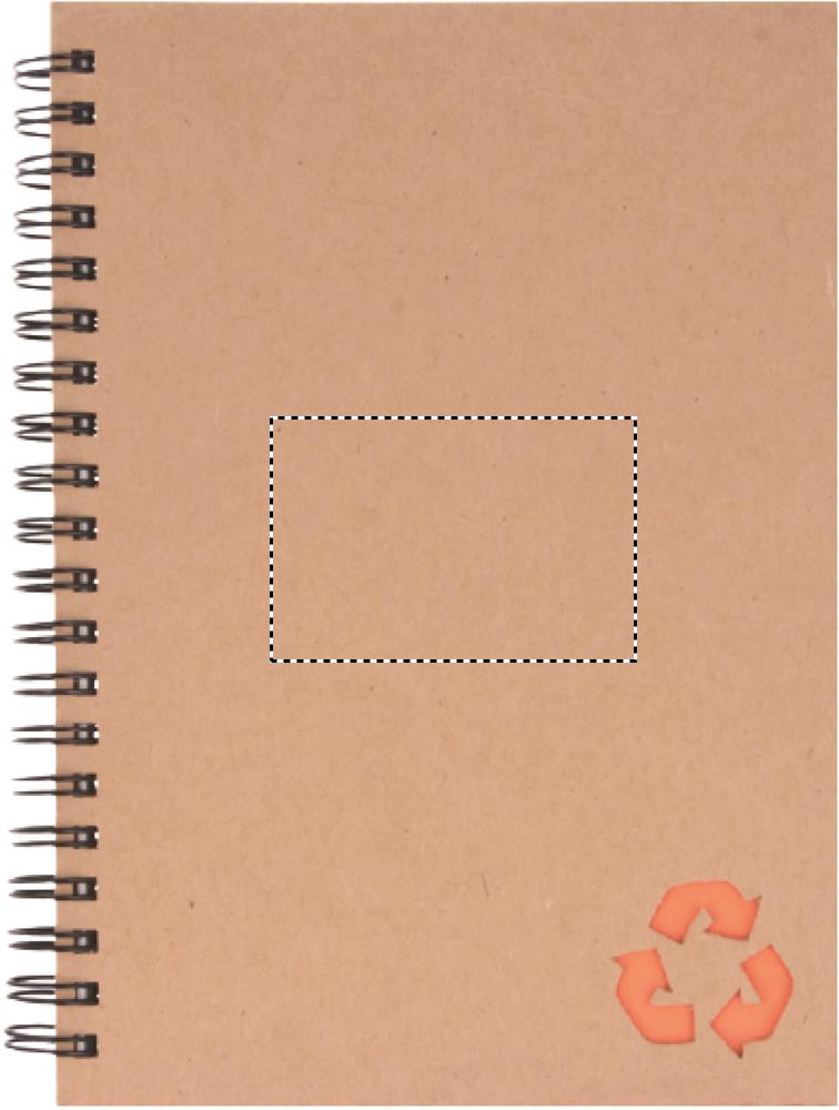 Taaskasutatud kartongist kaanega märkmik. Kahejuhtmeline. 140 joonega mineraalpaberilehte (70 lehte). Mineraalpaber on valmistatud kaltsiumkarbonaadist ja HDPE-st (polüetüleenvaigust), mida kasutatakse sideainena. See on veekindel ja rasvakindel.