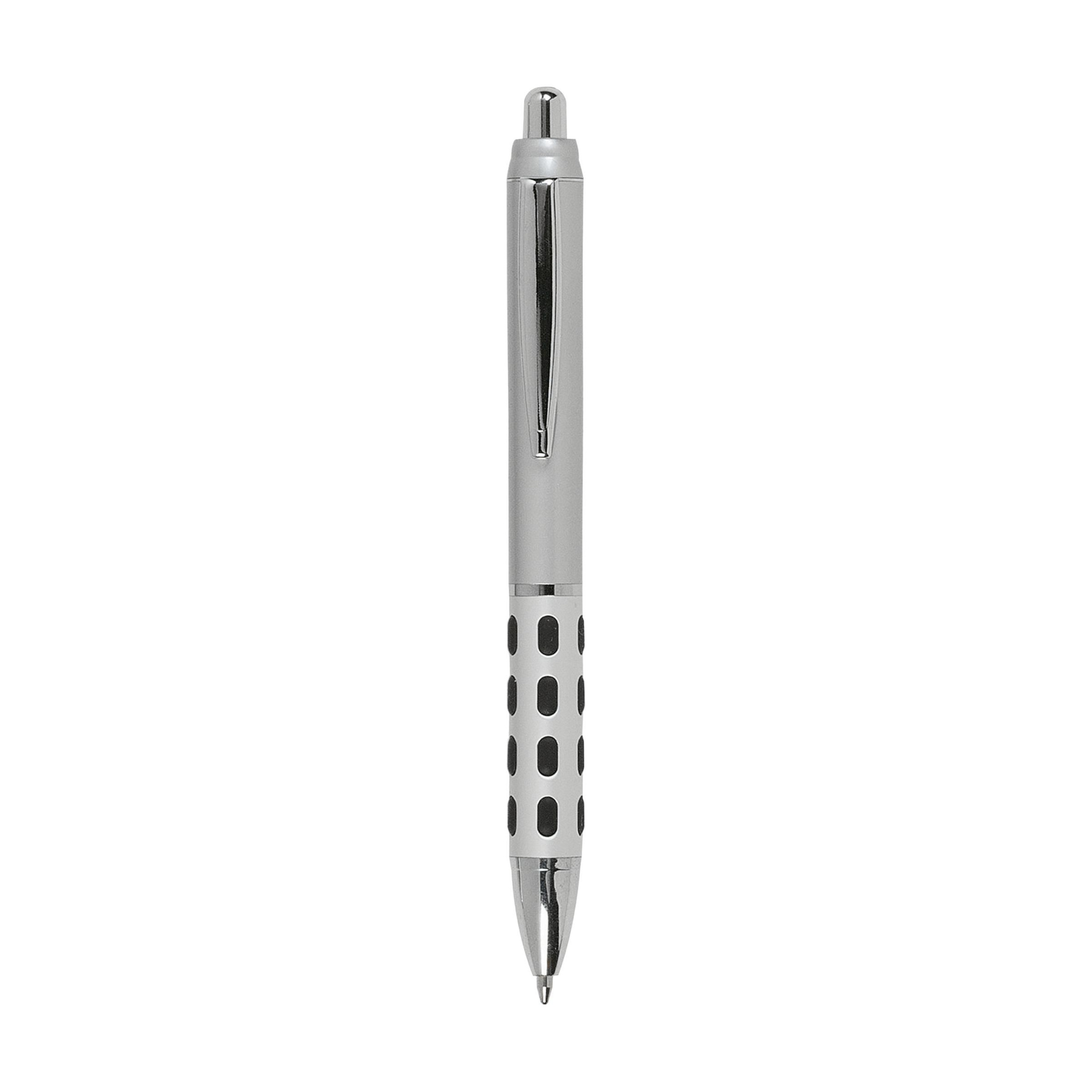 Sinise tindiga pastapliiats alumiiniumist käepideme ja värvilise kummidetailidega.