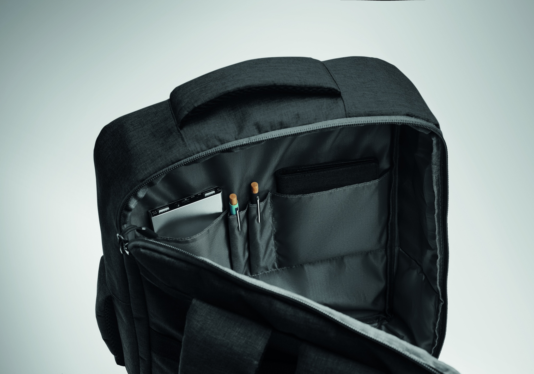Logo trade reklaamtoote pilt: 15-tollise sülearvuti seljakott, valmistatud 300D RPET-st ja 210D RPET-voodriga