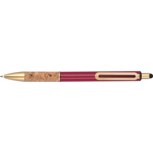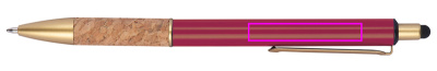 Kuldsete rakendustega metallist pastapliiats, sinise kirjaga täidis ja korgist haaretsoon. Teie logo graveeritakse klipist paremale.