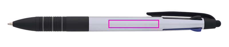 4in1 plastikust pastapliiats 3 erineva kirjutusvärviga (sinine, punane ja must) + puutefunktsioon ja kummeeritud haaretsoon. Trükime teie logo võllile.