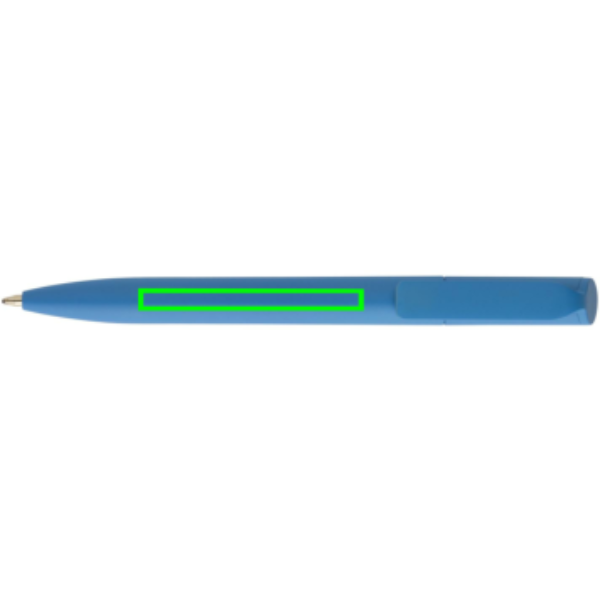 See kompaktne väike pastakas on valmistatud GRS-i sertifikaadiga taaskasutatud ABS-plastist ning pakub nii stiili kui ka funktsionaalsust. Keeratav, sinise tindiga. Kirjutuslaius 1 mm, kirjutusulatus 800 meetrit. Taaskasutatudmaterjali sisaldus: 54% eseme kogukaalust.