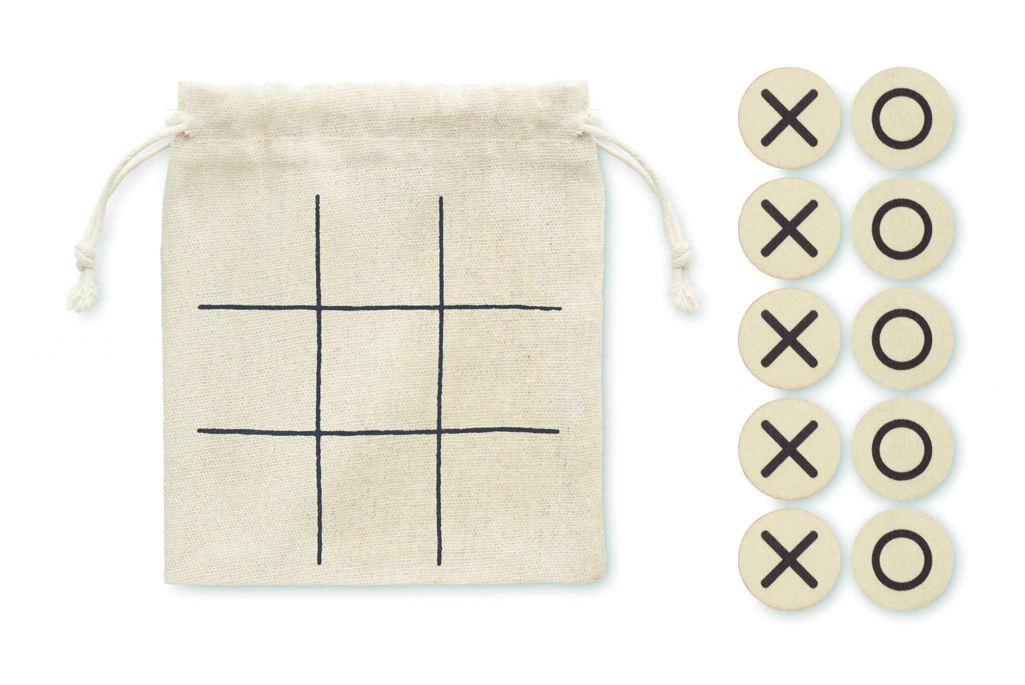 Puidust tic tac toe. Esitatakse puuvillases kotis. Puit on looduslik toode, ühe eseme värvis ja suuruses võib esineda väikesi erinevusi, mis võivad mõjutada lõppviimistlust.