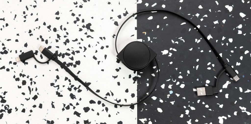 Logo trade reklaamtooted foto: RCS-standardi taaskasutatud plastik ja TPE 6-in-1 kaabel