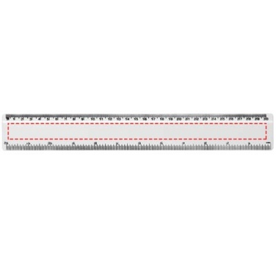 Tugev taaskasutatud plastist joonlaud, mille märgistused on saadaval nii tollides kui ka sentimeetrites.