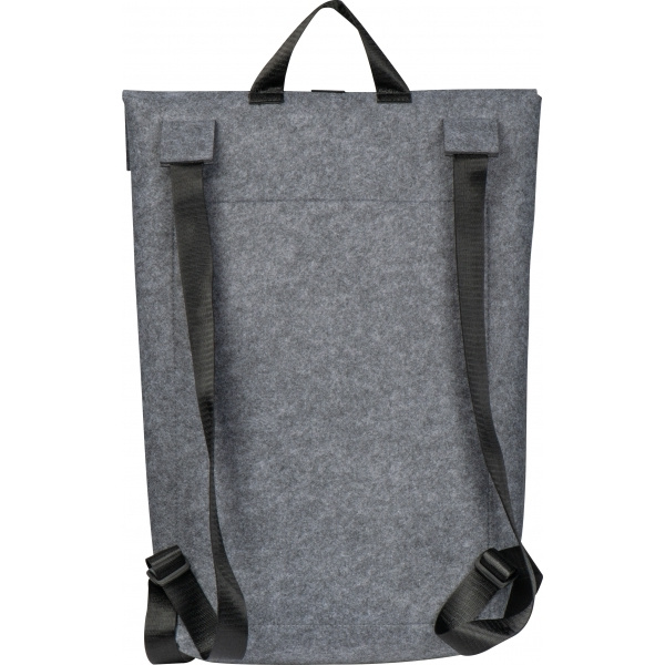 Kvaliteetne taaskasutatud vildist seljakott. Lisaks mahukale reguleeritava kinnisega sisesahtlile on sellel lukuga eesmine sahtel ja reguleeritavad polsterdatud õlarihmad. Teie logo asetatakse esiosasse.