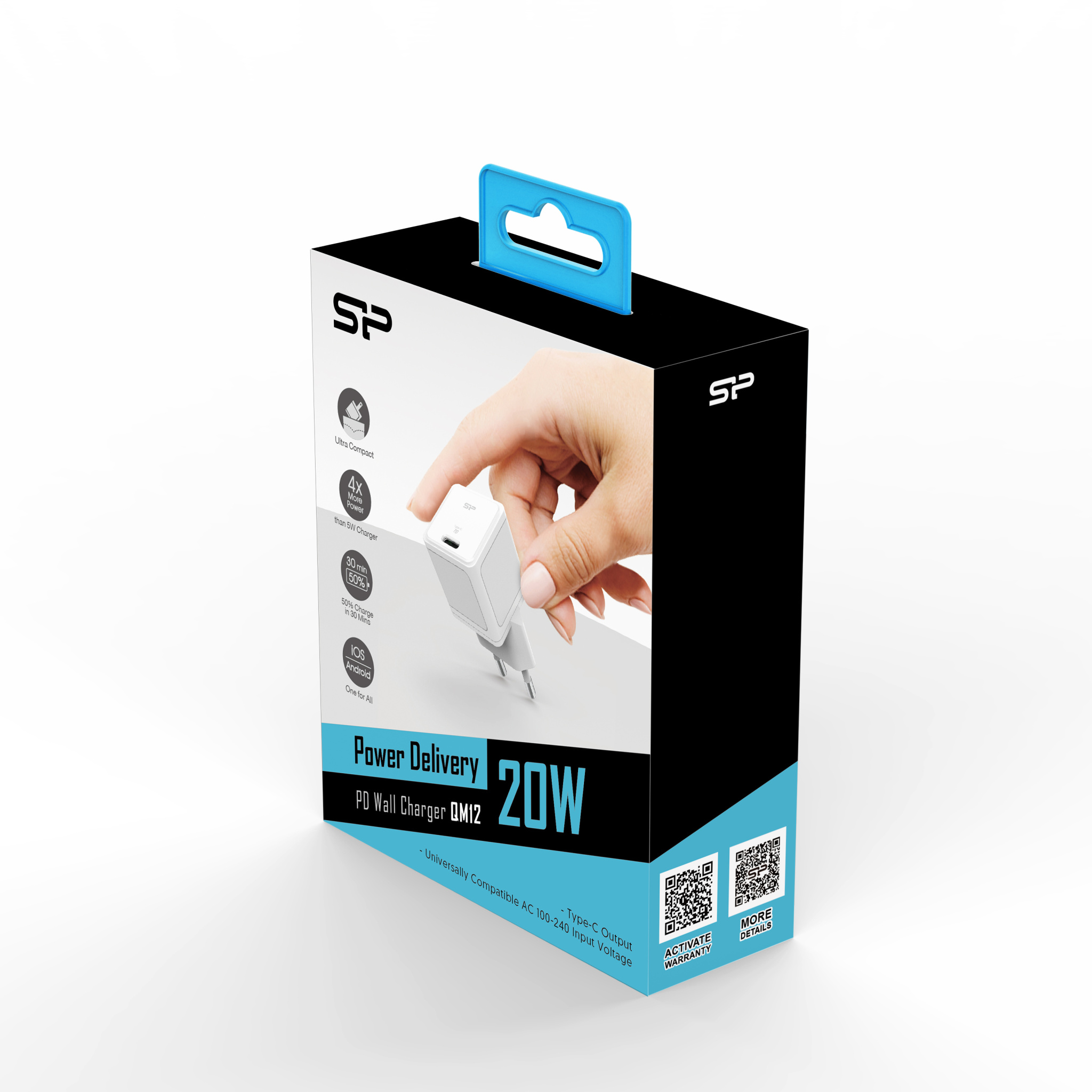 Silicon Poweri QM12 seinalaadija on ainulaadne kombinatsioon väikesest seadme suurusest ja suurest laadimisvõimsusest. See on 50% väiksem kui tavalaadijad ja annab kuni 20 W laadimisvõimsust. Seade on varustatud USB Type-C pordiga, mis tagab ühilduvuse enamiku seadmetega.