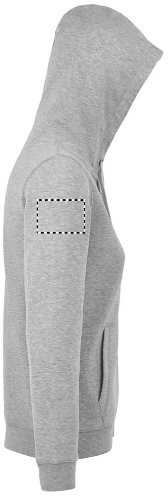 SOLI PIKE NAISED. Naiste tõmblukuga kapuutsiga pusa, 80% rõngaskedraga puuvill - 20% polüester Harjatud vooder, Väljast: 100% puuvill FLIIS 280 LSF (madala kokkutõmbumisega kangas), Sisseehitavad varrukad, 2 kotitaskut ees, Lõige ja õmmeldud, Voodriga kapuuts koos tooniga -tooniga nöör, 2x2 sooniku mansetid ja alläär. Krae sees poolkuu, teibitud kael, YKK tõmblukk. ÖKO-TEX®. Müüakse ainult trükiga.