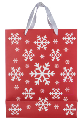 Suur lumehelbekujundusega ja kahe sangaga paberist jõulukinkekott. Trükime teie logo sildile.