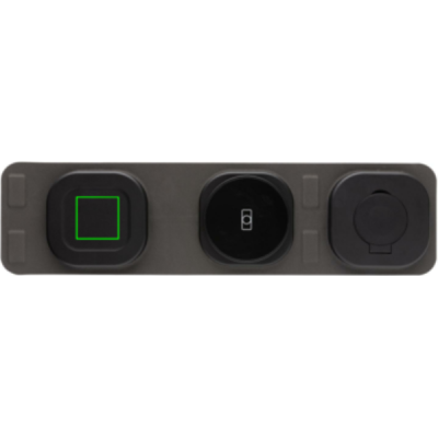 Luksuslik ja kokkupandav kolm-ühes juhtmevaba laadija, mis on valmistatud RCS-i ringlussevõetud ABS-ist Kogu taaskasutatud sisaldus: 46% eseme kogukaalust. RCS-sertifikaat tagab taaskasutatud materjalide täielikult sertifitseeritud tarneahela. Juhtmeta laadija on varustatud magnetilise 15 W juhtmevaba laadija ja täiendava 5 W juhtmevaba laadijaga, mis sobib kõrvaklappide või muude väikeste juhtmevabade laetavate seadmete jaoks, ning 2,5 W juhtmevaba laadijaga nutikellade jaoks (ainult Apple'i kellad). Kaasa arvatud RCS-sertifikaadiga 120 cm taaskasutatud TPE kaabel. Pakitud FSC® mix kraft pakendisse. Toode ja tarvikud 100% PVC-vaba. Sisend: 9V/3A optimaalseks kasutamiseks. Väljund: Telefon: 9V/1.1A; 9V/1,67 A/(15W), kõrvaklapid: 5V/1A (5W), käekell: 5V/0,5A.