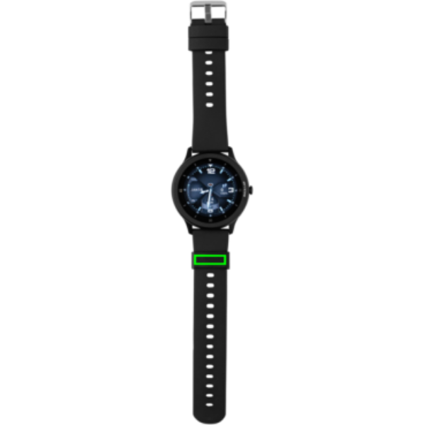 Moodne suure jõudlusega kell 1,28-tollise ümmarguse kiire reageerimisvõimega täispuuteekraaniga, et jälgida teie tegevusi kogu päeva jooksul. Kõrge eraldusvõimega ekraan. Valmistatud RCS (Recycled Claim Standard) sertifitseeritud taaskasutatud TPU käepaela ja tsingisulamist raamiga. Taaskasutatud sisu kokku: 23% RCS-i sertifikaat tagab taaskasutatud materjalide täielikult sertifitseeritud tarneahela Funktsioonide hulka kuuluvad: sammude arv, kalorid, distants, mitme spordiala (24 tüüpi) jälgimiskell, pulsi jälgimine, vererõhu jälgimine, unemonitori kalender. Uuendused: SMS, Facebook, Skype, WhatsApp jne. Ühildub operatsioonisüsteemidega Android 4.4 ja IOS 8.0. Ooteaeg on 25 päeva ja tööaeg kuni 7 päeva kella laadimiseks Pakitud FSC® mix kraft pakendisse Toode ja tarvikud 100% PVC vaba.