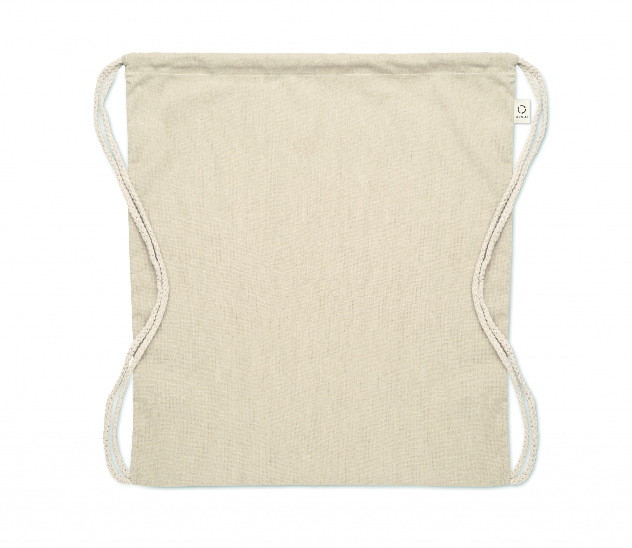 Pingutusnööriga kott taaskasutatud tarbimiseelsest puuvillast (70%) ja RPET-st (30%) 140 gr/m².