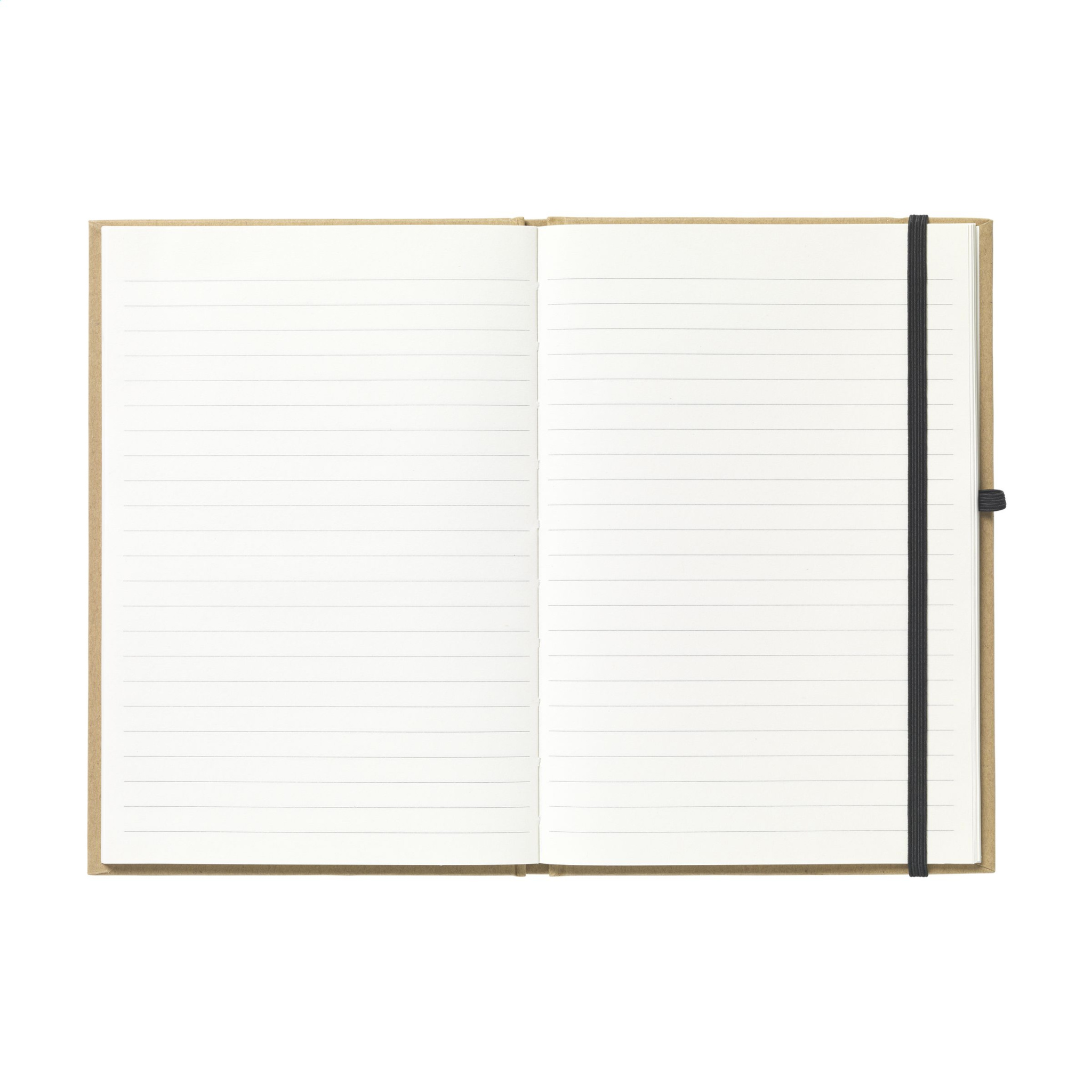 Taaskasutatud materjalist A5 suuruses märkmik. Koos ca. 80 lehte/160 lehekülge kreemikat joonega paberit (70 g/m²), käepärane pliiatsisilmus ja elastne sulgur.