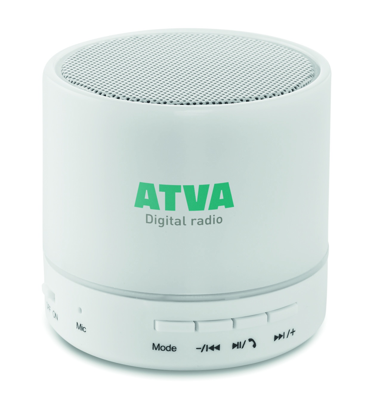 Logotrade ärikingi foto: Ümmargune juhtmevaba kõlar LED
