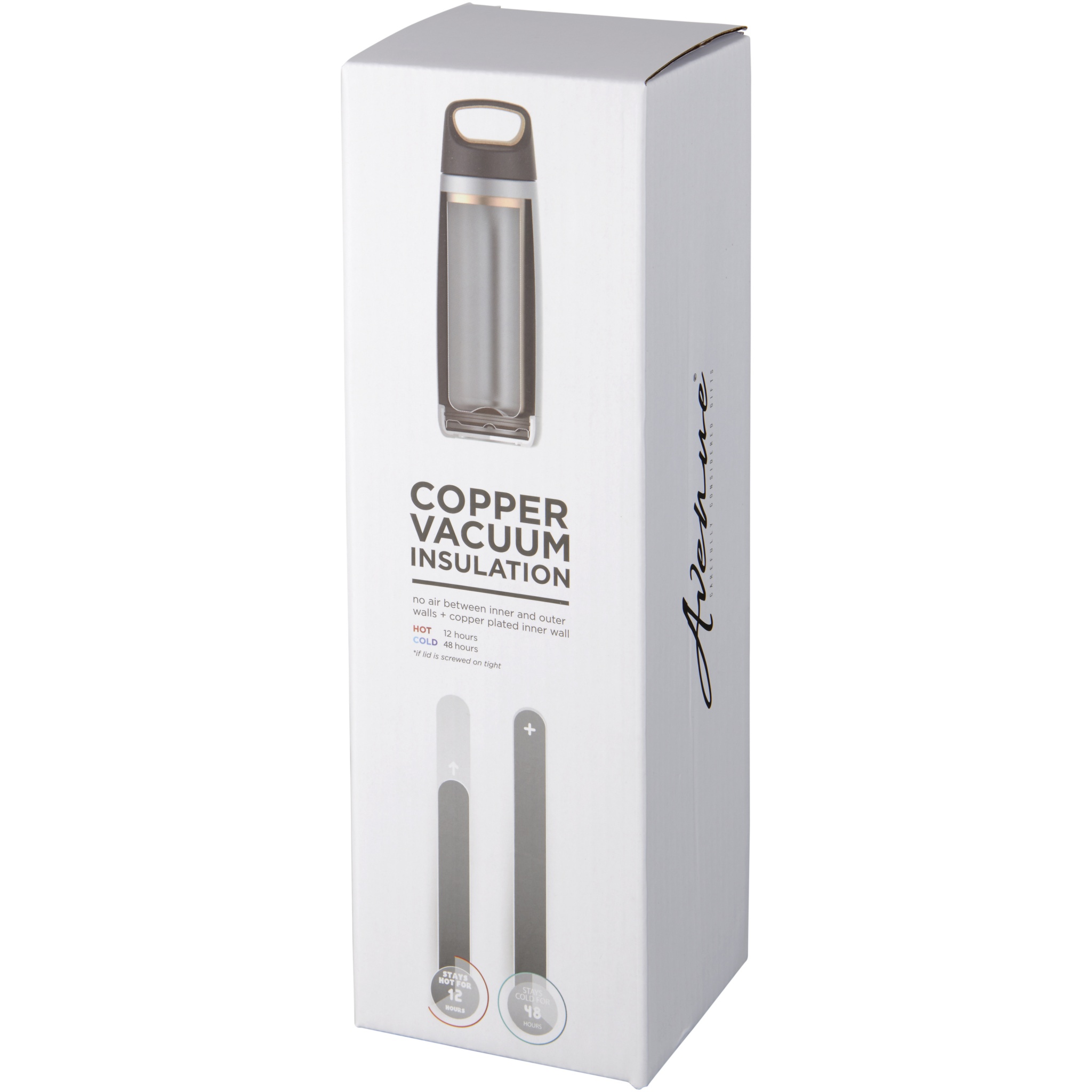 Kahekordse seinaga roostevabast terasest vaakumkonstruktsioon vase isolatsiooniga, mis võimaldab jookidel külmana püsida 48 tundi või kuumana vähemalt 12 tundi. Konstruktsioon hoiab ära ka kondenseerumise pudeli välisküljel. Korgist disainidetailide ja libisemiskindla põhjaga pealekeeratav kaas. Maht on 600 ml. Esitatakse Avenue kinkekarbis.